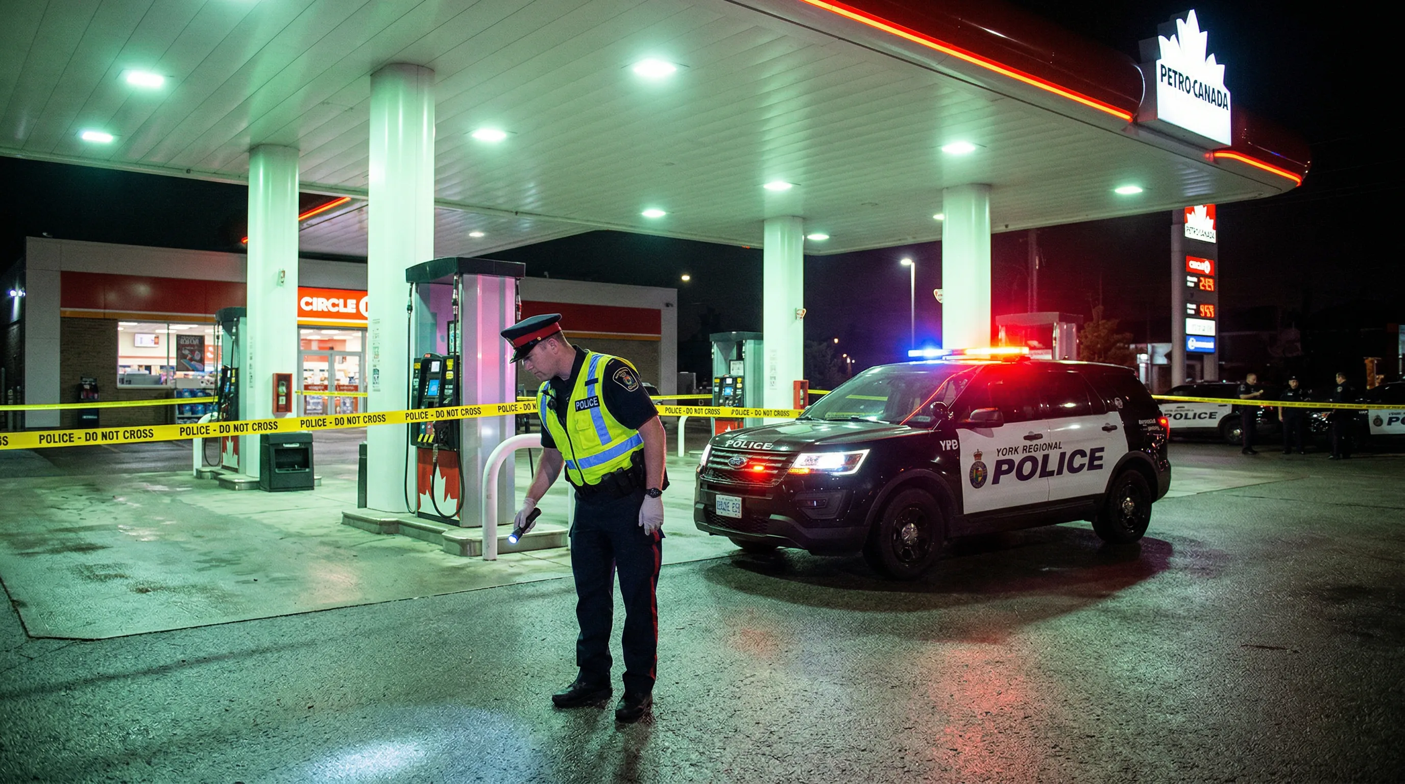 The seven robberies spanned multiple municipalities within York Region, indicating that the suspect was operating across a wide geographic area rather than confining activity to a single neighbourhood or city. While police did not release the specific dates and locations of all seven incidents, the pattern of targeting commercial businesses, particularly gas stations, during late-night and overnight hours is consistent with a common robbery profile.